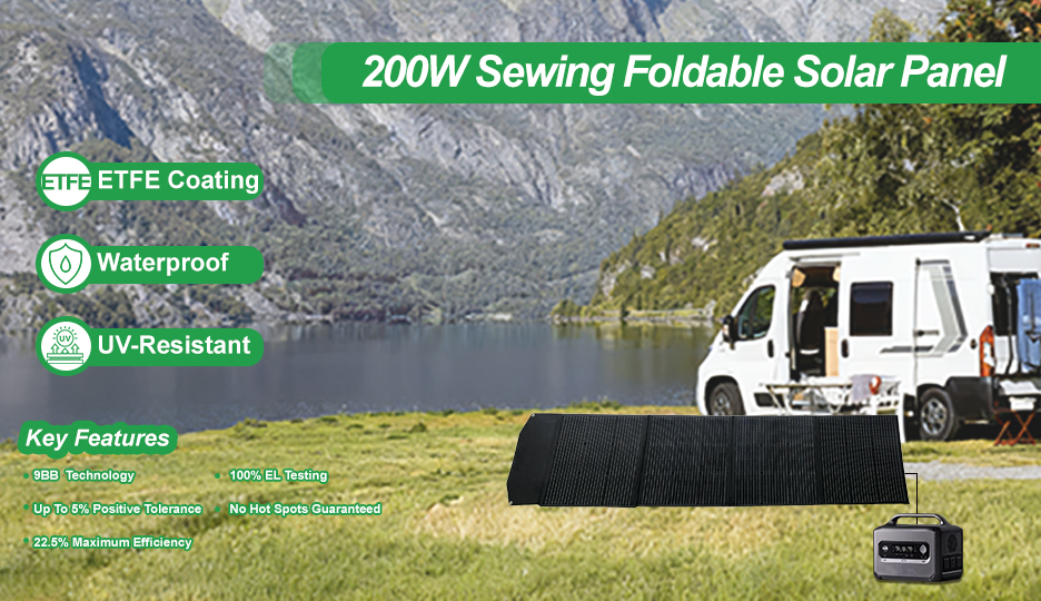 Integrated lamination foldable solar panel. Portable and waterproof, suitable for use in outdoor camping, hiking and RV travelling.
